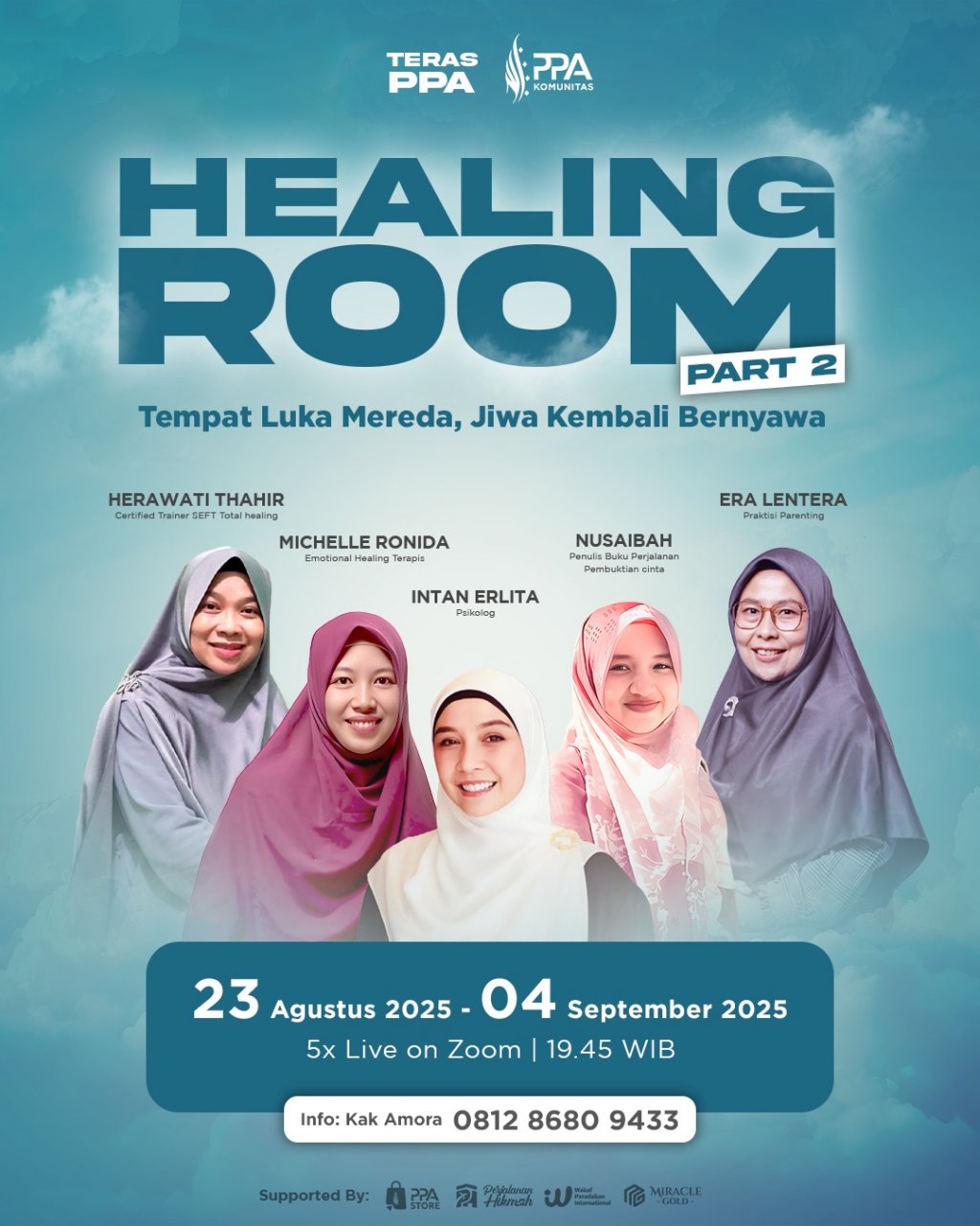 HEALING ROOM adalah program online khusus untuk perempuan yang ingin berdamai dengan luka batin, kecewa, kehilangan, dan kelelahan yang dipendam sendiri.