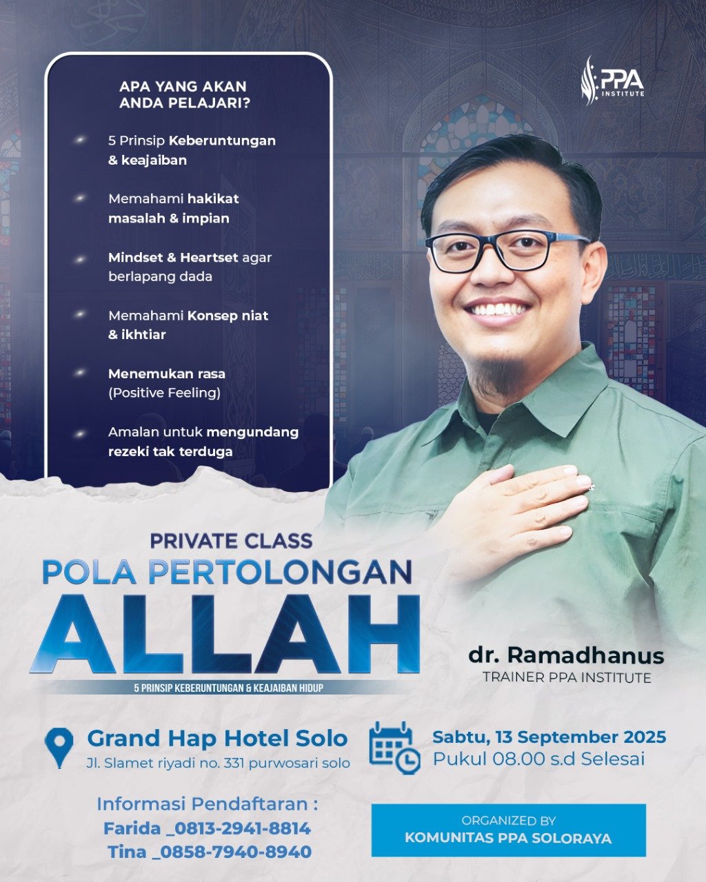 Melalui Private Class PPA Anda bisa terhubung kembali denganNya dengan penuh harapan, untuk: