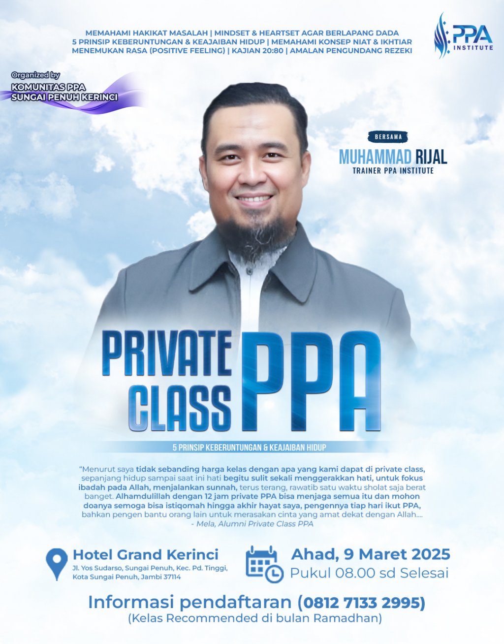Temukan jawaban atas segala pertanyaan tentang kegelisahan hidup yang InSyaaAllah akan dijawab secara mendalam dalam Private Class PPA.