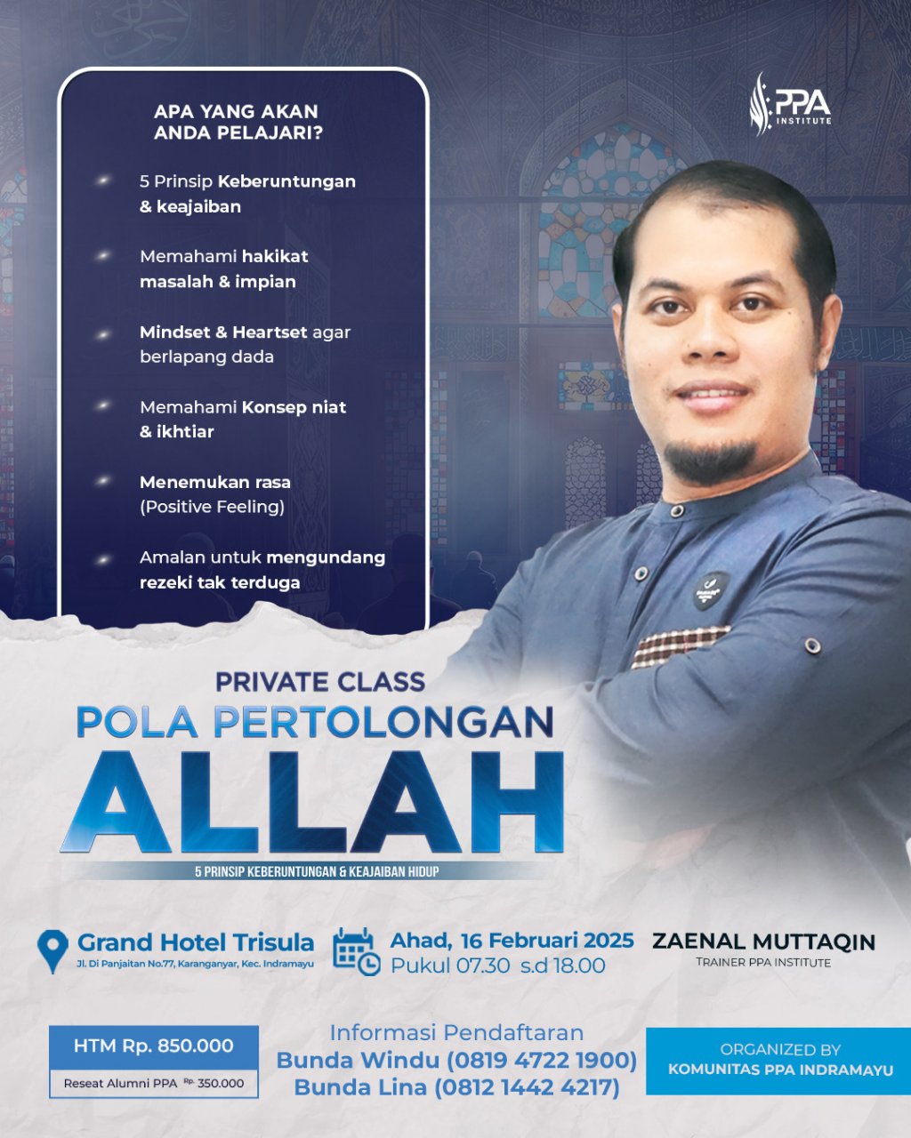 PPA di sajikan dalam ‘One Day Training Private Class’ yang Membahas POLA Terapan Aplikatif untuk Menyelesaikan problematika kehidupan telah dipraktekan oleh ribuan alumninya, Bukan Cuma teori tapi Aplikatif dan terbukti mampu mengundang keajaiban dalam hidupnya.
