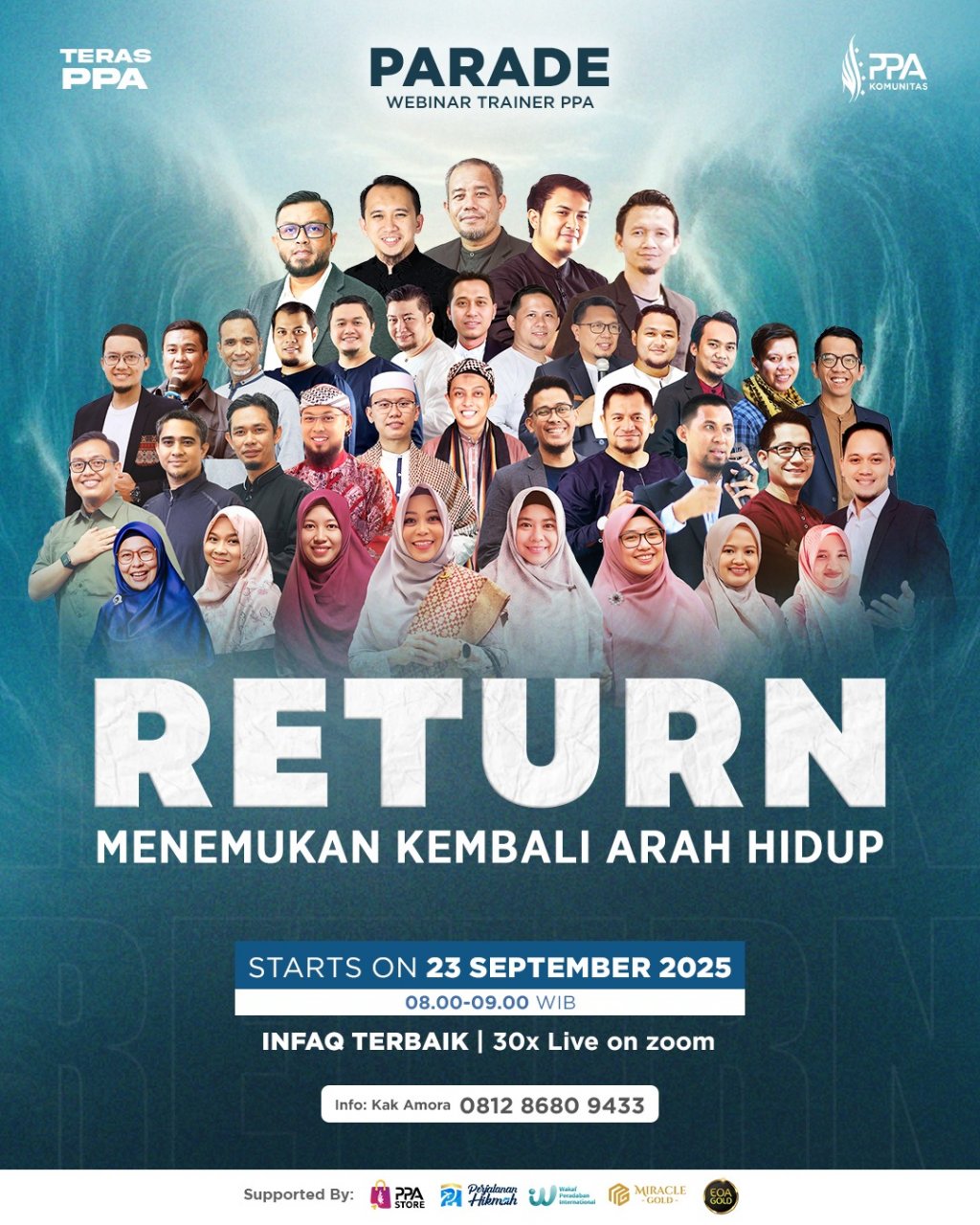 RETURN adalah Parade Webinar terbesar Trainer PPA, menghadirkan 38 pemateri pilihan yang akan menuntun kita menemukan kembali arah hidup.